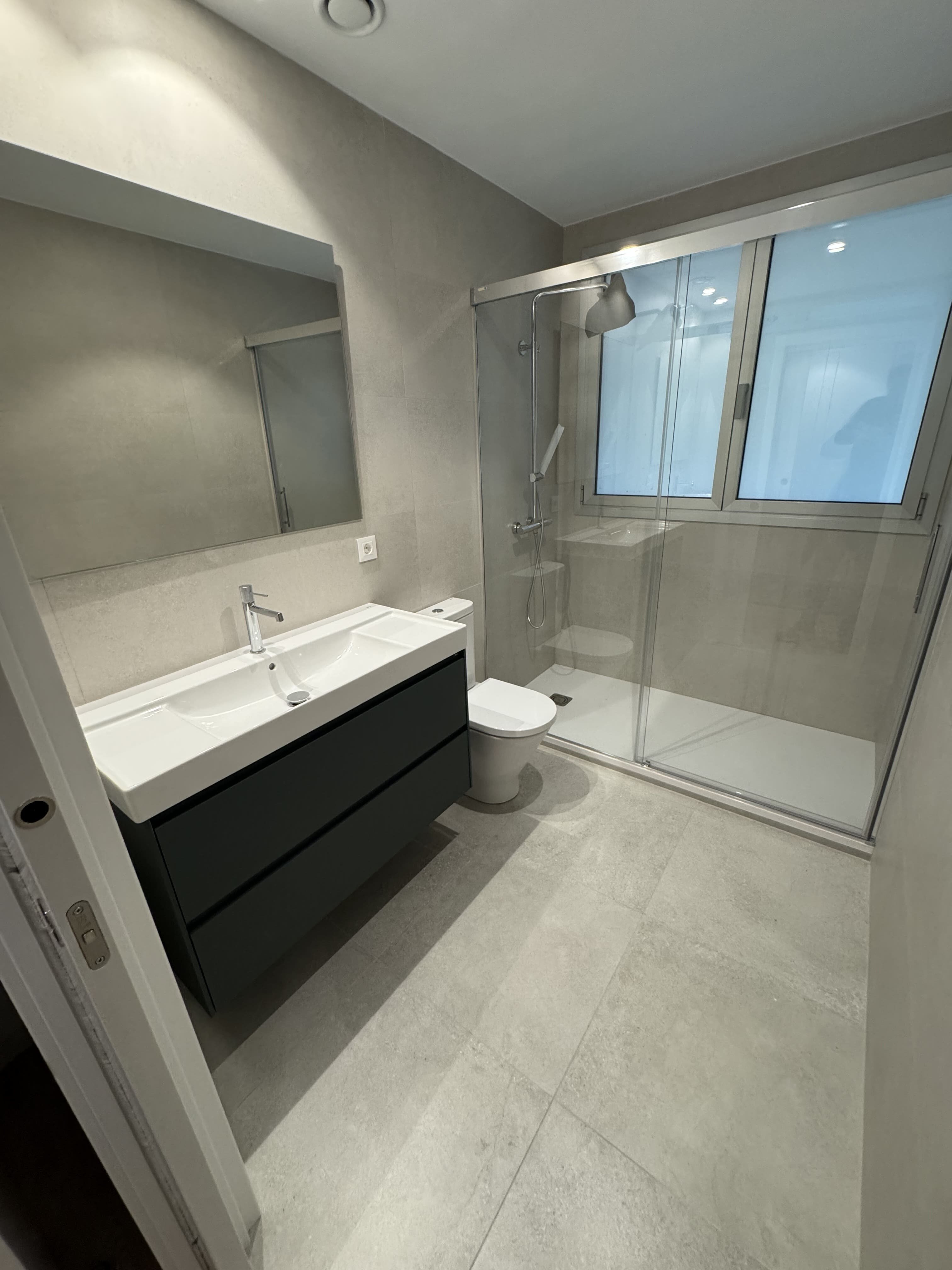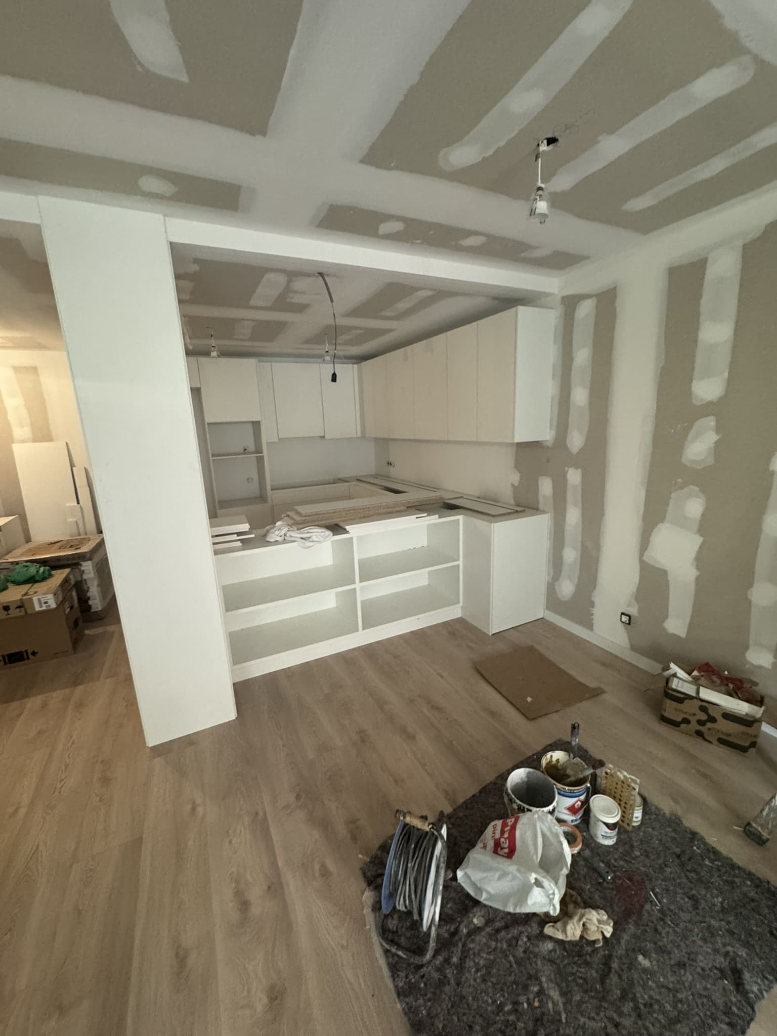 L’oficina presentava una distribució i acabats obsolets, que vam transformar per complet amb un projecte integral que abasta des del desmuntatge i demolició inicial fins a la finalització i lliurament amb mobiliari i acabats llestos per entrar a viure. Les actuacions van incloure reforços estructurals puntuals, nova distribució d’envans i instal·lacions, revestiments, fusteries interiors i exteriors, i tot el mobiliari de cuina i bany. També es van instal·lar terres nous, il·luminació empotrada i sistemes moderns d’aïllament tèrmic i acústic. El resultat és un espai completament renovat i funcional, amb un disseny net i actual. Una reforma clau en mà que reflecteix el nostre compromís amb la qualitat, l’eficiència i el bon gust.